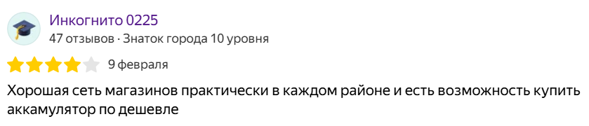 Хорошая сеть магазинов практически в каждом районе и есть возможность купить аккамулятор по дешевле