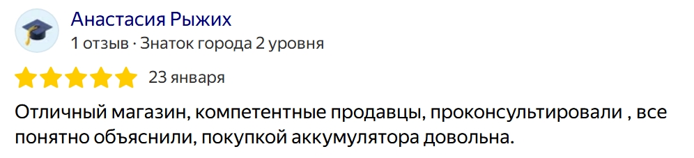 Отличный магазин, выбор аккумуляторов большой, персонал вежливый, грамотный, всё расскажут, покажут, приобретал аккумулятор, парням спасибо, рекомендую.